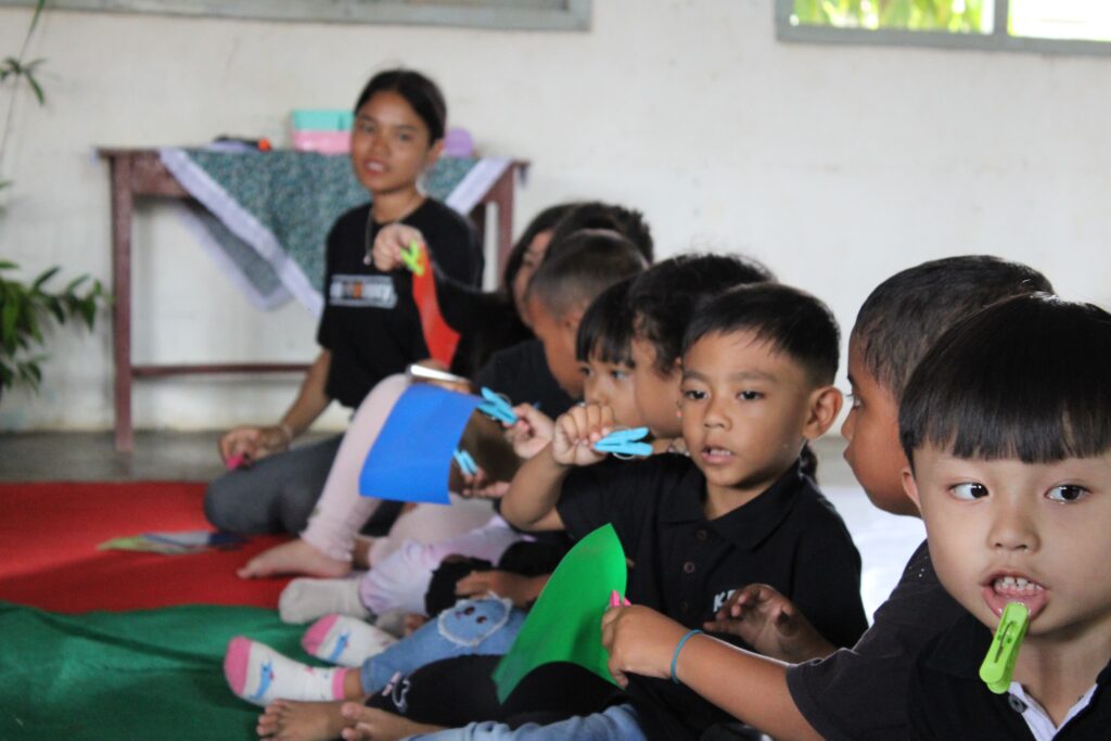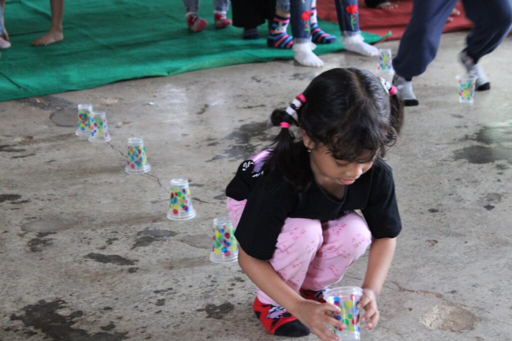 Untuk melatih kemandirian sejak dini, peserta didik diajak untuk mengancingkan kancing baju, memakai dan melipat bajunya Kembali. Lanjut, agar memperkuat pembelajaran berbagai kegiatan game diadakan, diantaranya memisahkan biji-bijian, buka tutup gelas, dan estafet origami menggunakan penjepit baju, yang diharapkan dapat memperkuat hubungan sosial dan komunikasi antar peserta didik.
