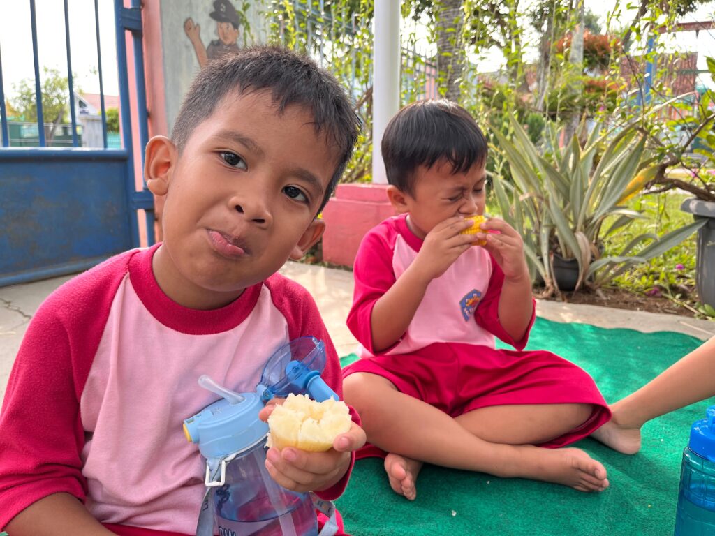 Anak-anak TK Xaverius Kotabumi dengan antusias membawa kudapan sederhana berupa rebusan seperti pisang rebus, ubi rebus, jagung rebus, atau singkong rebus. Selain itu, beberapa anak juga membawa jajanan pasar yang dibungkus dengan daun, seperti lemper, lemet dan arem-arem.