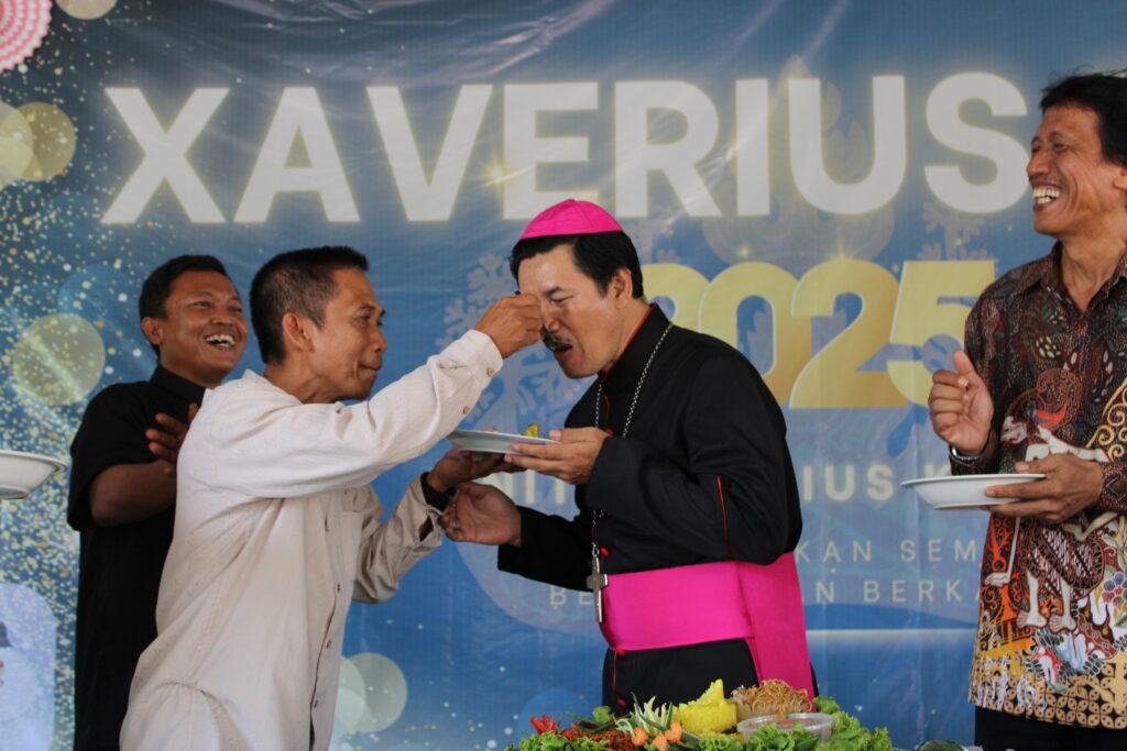 Memasuki puncak acara, prosesi potong tumpeng menjadi simbol syukur sekaligus doa agar perjuangan dan karya Xaverius terus diberkati. Momen yang paling menyentuh hati hadir ketika tali kasih diberikan kepada para purnabakti TK, SD, dan SMP Xaverius Kotabumi. Suasana haru tidak terhindarkan, sebab di sanalah tergambar begitu besarnya jasa para pendidik yang telah mengabdikan hidupnya demi mencerdaskan dan membentuk karakter generasi muda. Perayaan kemudian ditutup dengan ramah tamah dan santap siang bersama, menciptakan ruang keakraban yang hangat di antara seluruh peserta.